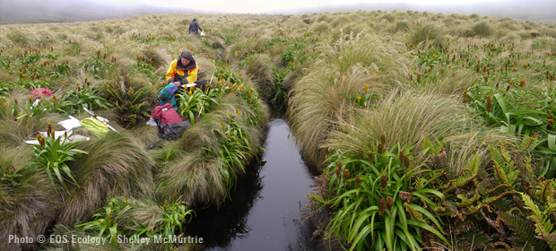 The water is tannin-stained, with acidic to neutral pH, well oxygenated with cool summer water temperatures (7.4–10.8 °C). Riparian vegetation is either dominated by Dracophyllum, tussocks, or a mixture of these and ferns.